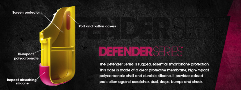 Poslední variantou je pouzdro DEFENDER . Toto pouzdro je opravdu špičkou v ochraně iPhonu nebo iPadu . Opět se skládá ze dvou částí jako předchůdce . Tentokrát je ovšem základem pouzdra polycarbonový kryt , který kompletně zakryje celý iPhone včetně skla. Dotyk je zabezpečen unikátní vestavěnou folii , která nijak nesnižuje citlivost. Přes tento kryt se „natáhne“ silikonový obal , který díky „zámkům „ přesně sedne a kopíruje jeho tvar . Opět se zde objevuje krytí všech výstupů. Nyní se nemusíte obávat ani pádu do louže nebo zvlhnutí přístroje .